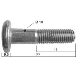 PERNO RUEDA ARTILLERA CASALS MONTENEGRO. Referencia CASALS 21128 - OEM 0601049 - 060001049. Diametro 18mm. Ancho cabeza 9.5mm. Longitud rosca 45mm. Longitud 80mm. Metrica 18x2.5