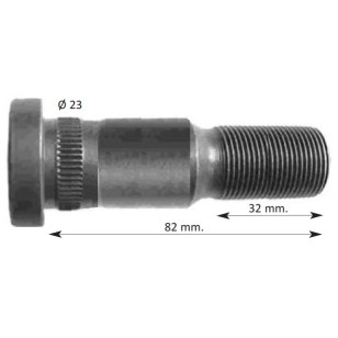 PERNO RUEDA DELANTERA RYME RENAULT. Referencia RYME 0414038 - OEM 5010319140. Longitud 82mm. Longitud rosca 32mm. Diametro 23mm. Metrica rosca 22x1.5