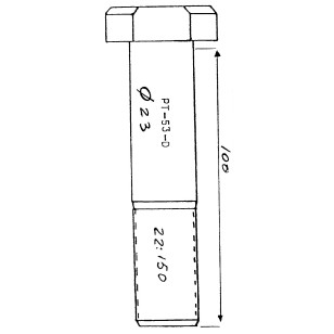 PERNO RUEDA DERECHA PLATAFORMAS 100MM. Referencia VULCANO PT-53-D. Longitud 100mm. Diametro 23mm. Rosca 22x1.5