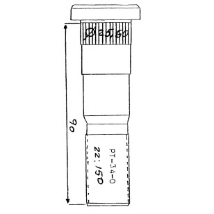 PERNO RUEDA DERECHA PLATAFORMAS 90MM. Referencia VULCANO PT-34-D. Longitud 90mm. Diametro 25.60mm. Rosca 22x1.5