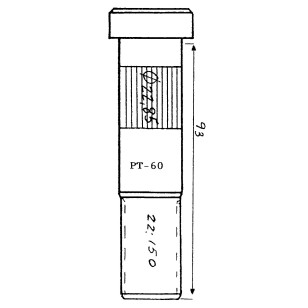 PERNO RUEDA DOBLE DERECHA LECIÑENA MODERNO 93MM. Referencia VULCANO PT-60. Longitud 93mm. Diametro 22.85mm. Rosca 22x1.5
