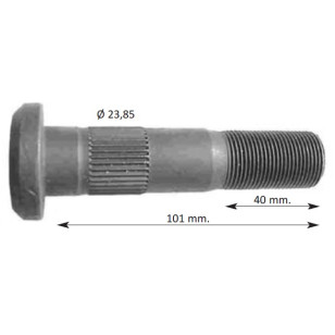 PERNO RUEDA SIMPLE RYME MONTENEGRO EJE 20". Referencia RYME 0414028 - OEM 0601384. Longitud 101mm. Longitud rosca 40mm. Diametro 23.85mm. Metrica rosca 22x1.5