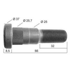 PERNO RUEDA TRAILOR CASALS. Referencia CASALS 21415. Rosca exterior M22x1.5mm. Longitud Rosca 52mm. Calidad-Clase 10.9. Altura Cabeza bulon 9mm. Diametro Cabeza bulon 37mm. Peso 0.34kg