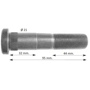 PERNO RUEDA TRASERA RYME RENAULT. Referencia RYME 040587 - OEM 5000351162. Diametro 21mm. Longitud 32mm. Longitud rosca 44mm. Longitud 95mm. Metrica 20x1.5