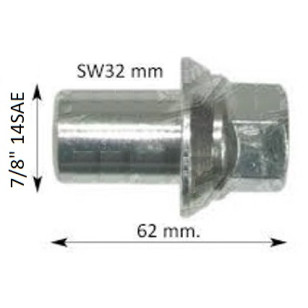 TUERCA RUEDA TRASERA LLANTA ALUMINIO RYME VOLVO. Referencia RYME 0414201. Diametro Exterior 32mm. Alto 62mm. Metrica Rosca 7/8" 14SAE