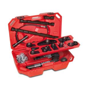 EQUIPO GATO DE CARROCERO. Conjunto de 25 piezas en estuche de plástico. Cilindro 10T. Cadena de tiro 1000kg. Ref. Mega GC10