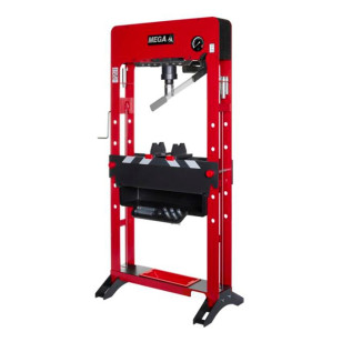 PRENSA DE TALLER MANUAL CHASIS ANCHO 50 TN. Diseño compacto y funcional. Elementos hidráulicos dentro del chasis. Pies de transporte desechables. Cilindro deslizable. Soporte para empujadores. Fuerza máxima 50 TN, Altura total 1900 mm, Espacio entre columnas 720 mm, Espacio pistón-mesa min-max 81-770 mm. Ref. Mega PRD50